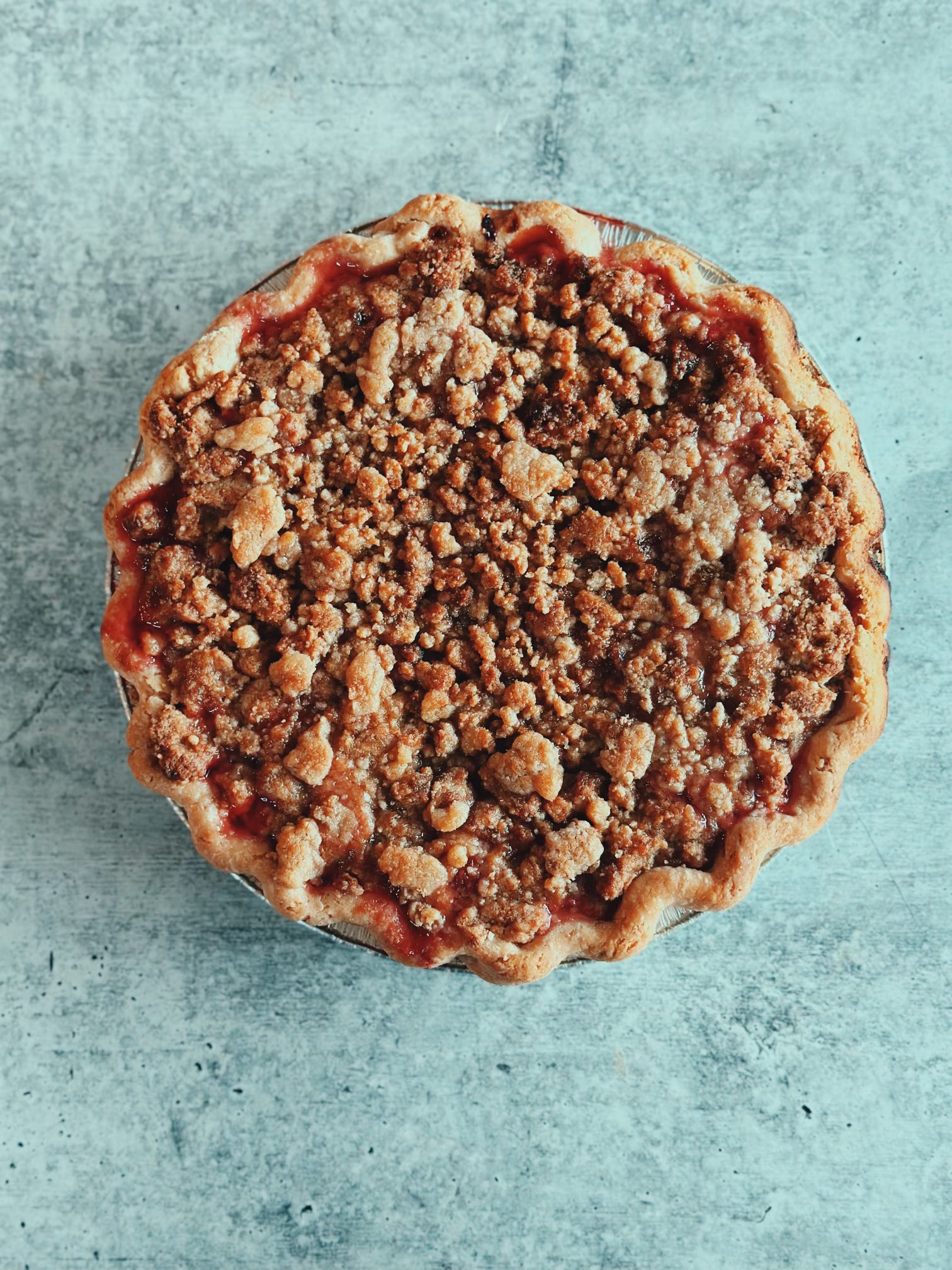 Strawberry Rhubarb Crumble Pie